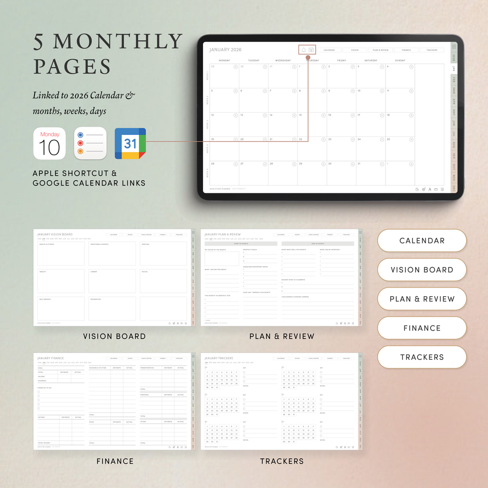 Monthly Digital Planners with Calendar Integration